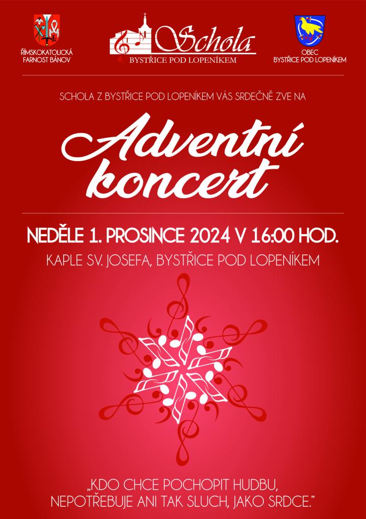 Schola z Bystřice pod Lopeníkem všechny srdečně zve na adventní koncert, který se koná v neděli 1. prosince v 16 hodin v kapli sv. Josefa v Bystřici pod Lopeníkem.