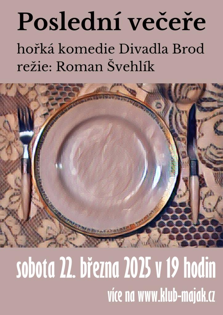 V podání divadla Brod si můžete vychutnat jak sobotní večer s hořkou komedií POSLEDNÍ VEČEŘE, tak s dětmi nedělní pohádku NARODIL SE PALEČEK...