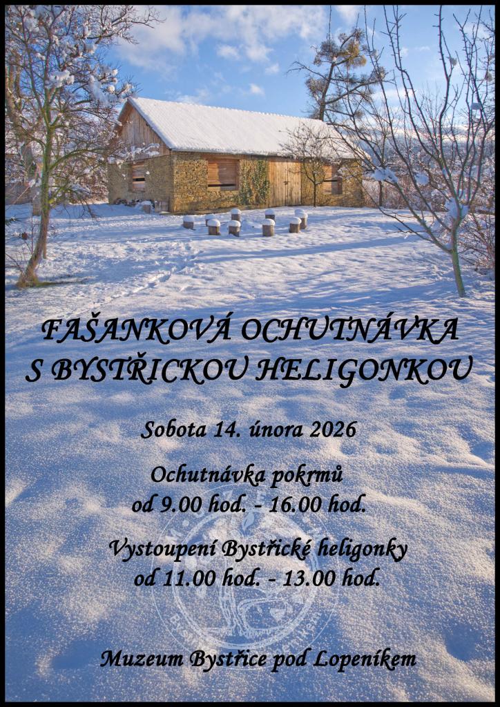 V sobotu 14. února pořádá místní muzeum "Fašankovou ochutnávku s Bystřickou heligonkou". Ochutnávka bude od 9 do 16 hodin a vystoupení Bystřické heligonky od 11 do 13 hodin. Všichni jsou srdečně zváni.