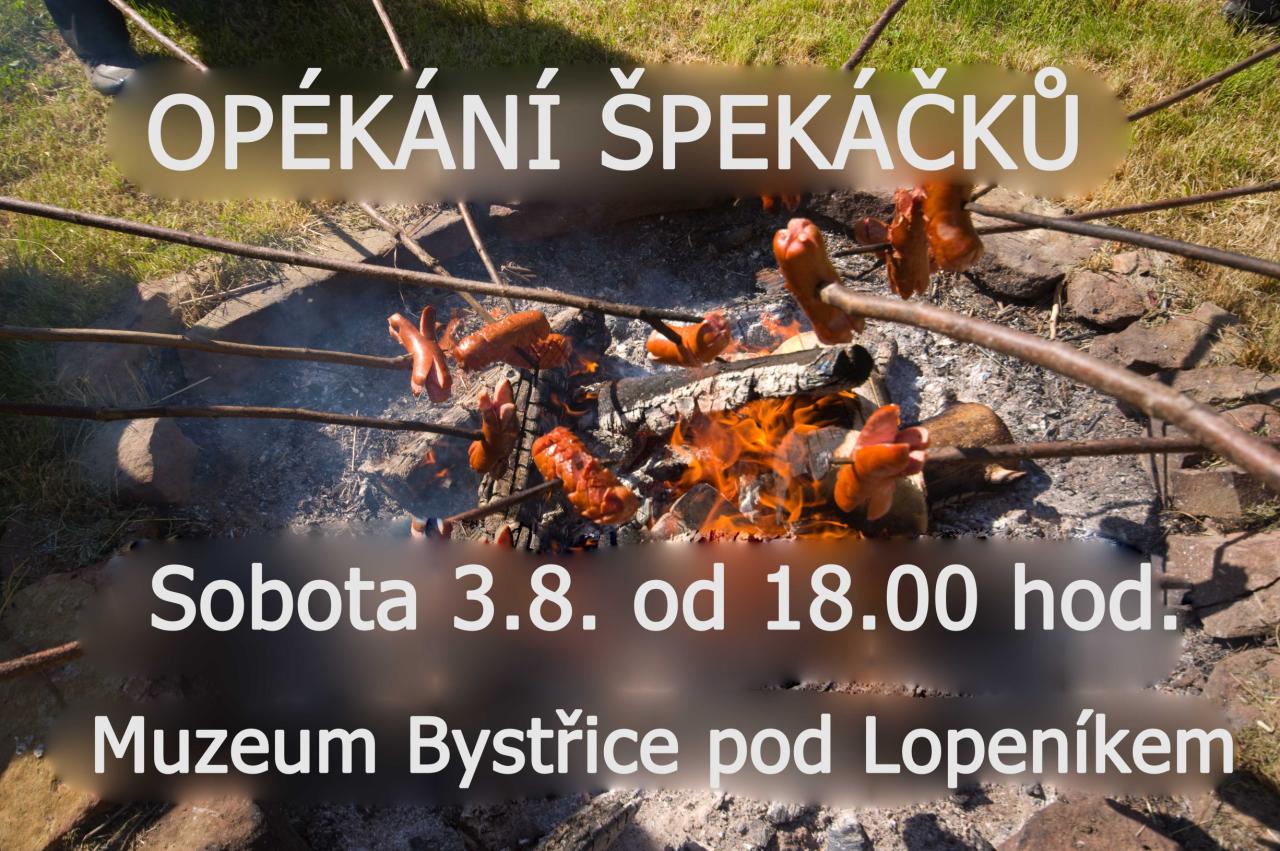 Muzeum Bystřice pod Lopeníkem Vás zve na sobotní (3.8.2024) opékání špekáčků. Akce bude probíhat od 18hod v zahradě muzea.
