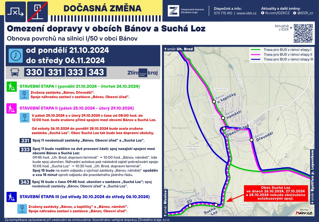 Informace ke změnám v organizaci veřejné dopravy, která se týká linek s vazbou na naší obec - viz přiložený leták.