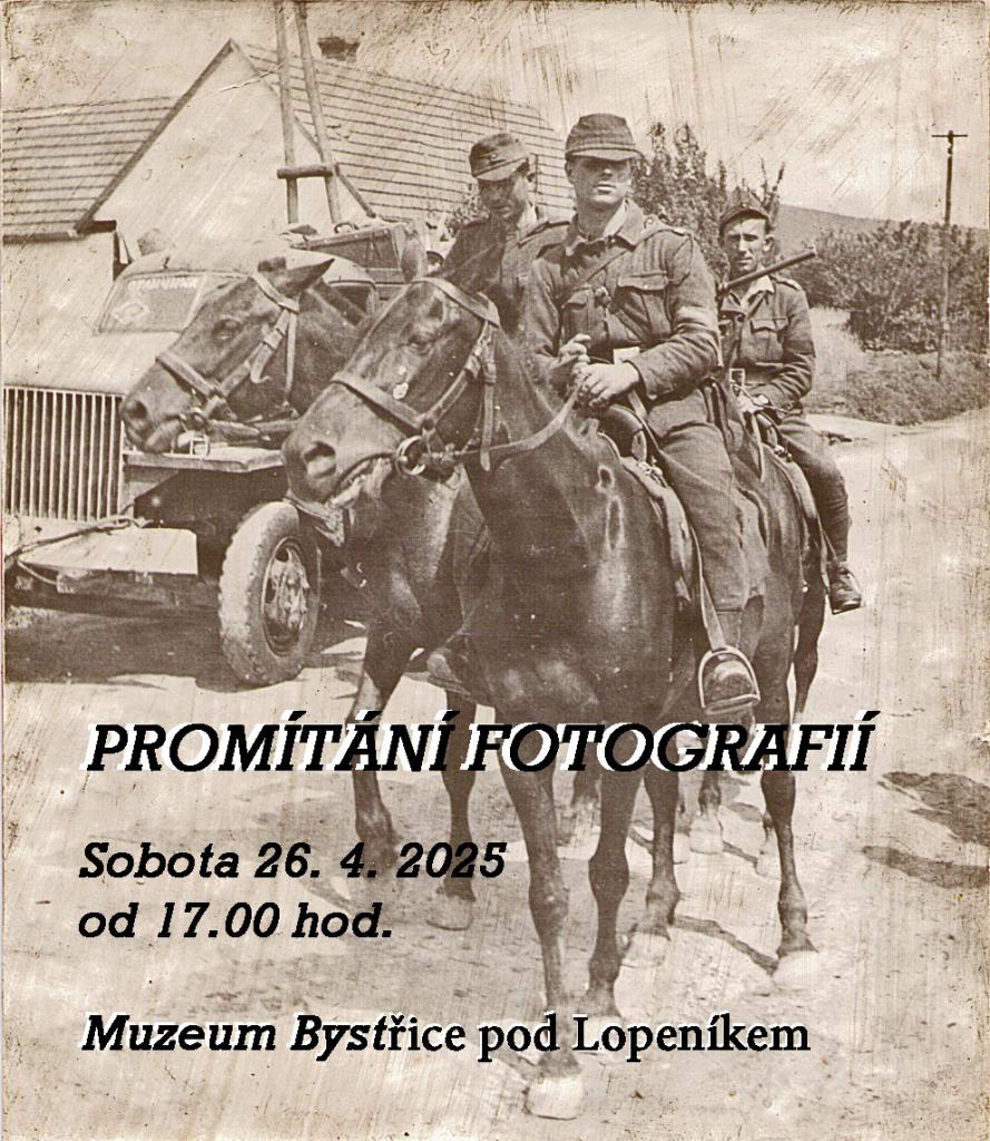 Promítání fotografií proběhne v sobotu 26.04.2025 nod 17:00 hodin v místním muzeu. Všichni jste srdečně zváni.