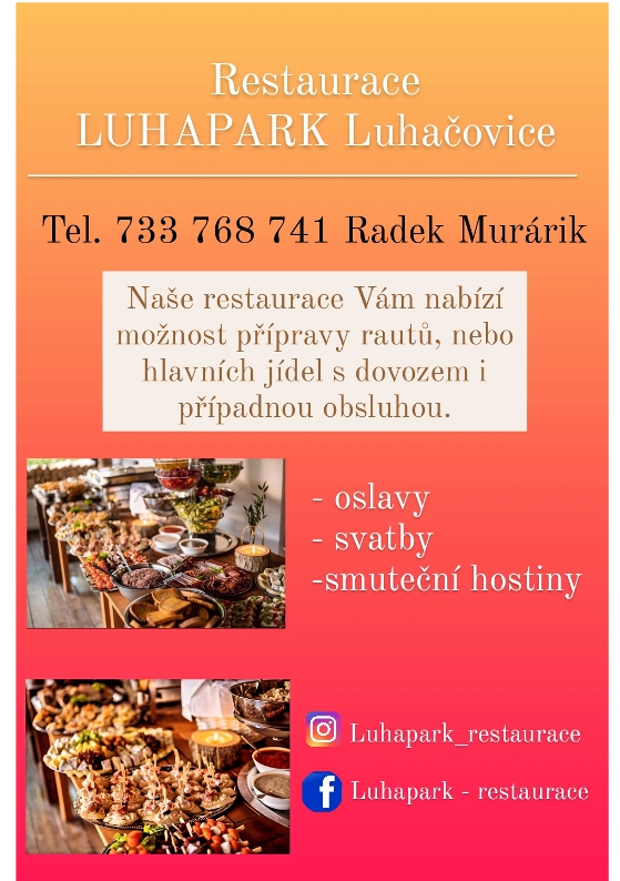 Restaurace Luhapark Luhačovice nabízí možnost přípravy rautů, nebo hlavních jídel s dovozem i případnou obsluhou. Více viz příloha.
