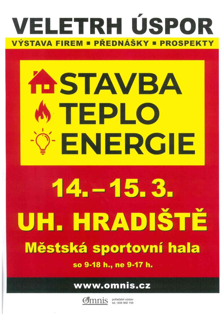 Výstavnická společnost Omnis Olomouc a.s. pořádá již 20. ročník stavební výstavy STAVBA – TEPLO – ENERGIE – Veletrh úspor Uherské Hradiště, na kterou jste srdečně zváni a bude se konat v Městské sportovní hale o víkendu 14. – 15. března 2026.