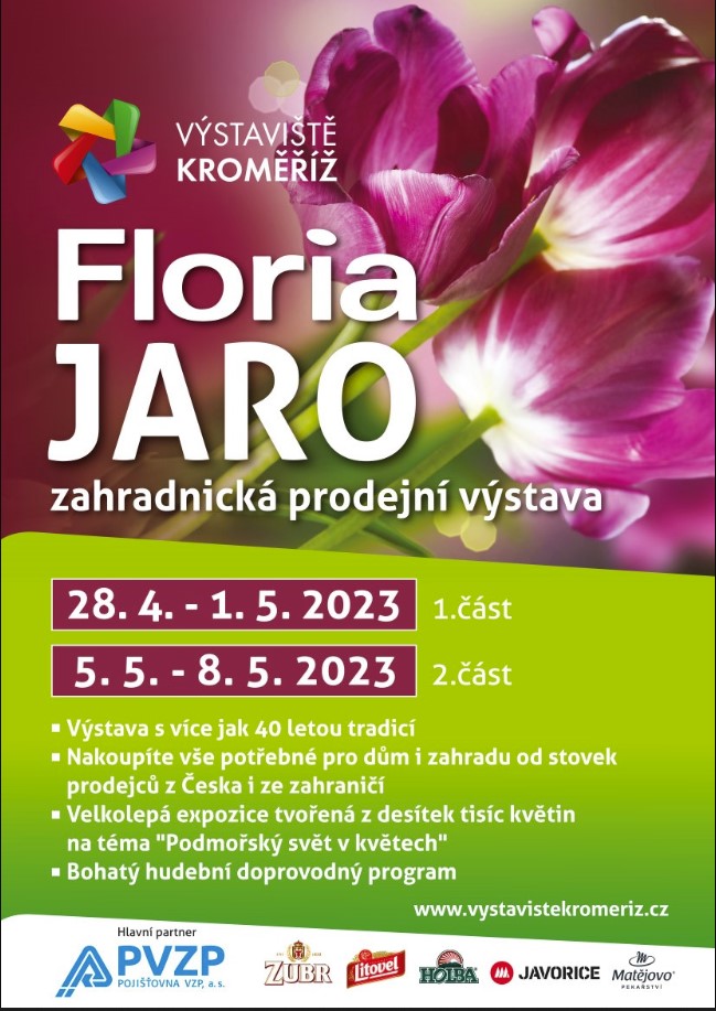 Klub seniorů pořádá zájezd do Kroměříže na výstavu Floria jaro 2023, který se koná v pátek 28.4.2023. Cena autobusu je 150,- Kč a vstupné 120,- Kč. Zájezd se uskuteční pouze za účasti nejméně 40 osob. Přihlásit se můžete do středy 29.3. na t.č. 608 269 694.