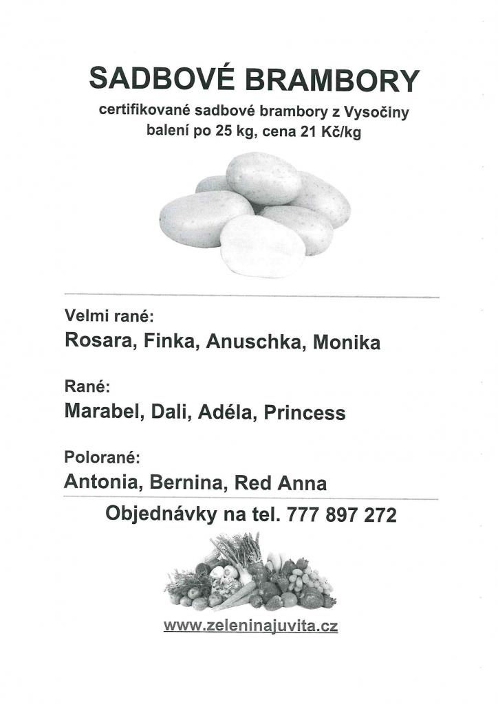 Řidič přijímá objednávky na sadbové brambory t.č. 777 897 272.