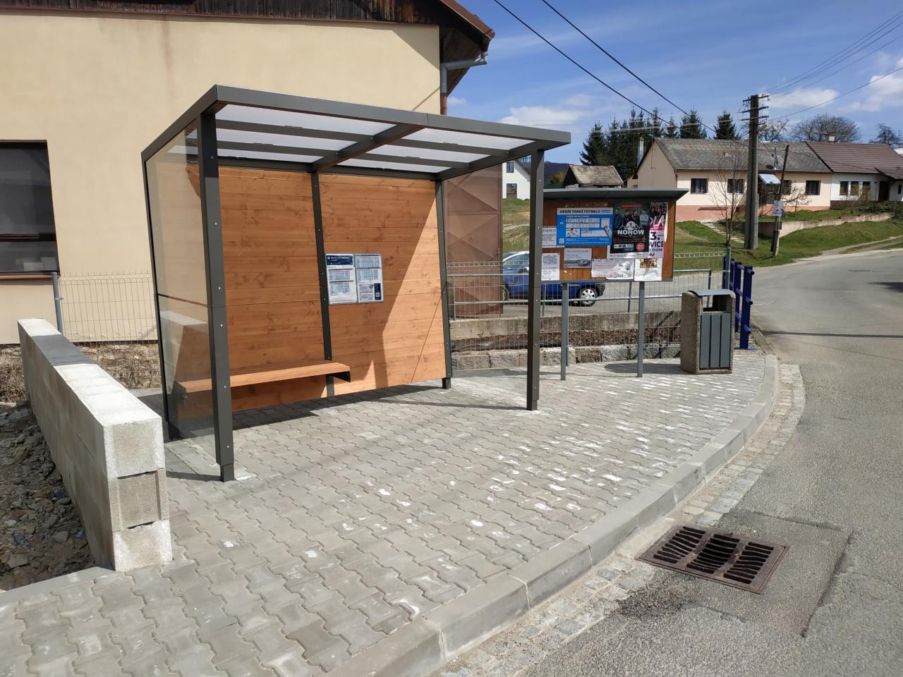 Realizována byla výměna všech čtyř zastávek u silnice I.tř. I/50 a dvou zastávek v obci vč. stavebních úprav zpevněných ploch. U zastávky "U Školy" budou stavební úpravy realizovány následně, vzhledem k rozsahu provedení.
