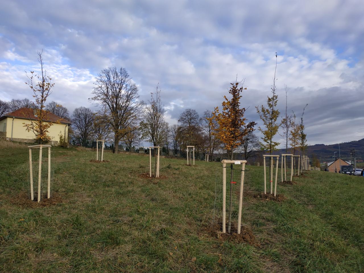 Výsadba byla realizována v prostoru mezi novou lokalitou pro bydlení a hřbitovem. Plocha zeleně je koncipována jako optické oddělení obytné části od hřbitova s možností následného doplnění prvků zóny odpočinku a zábavy.
